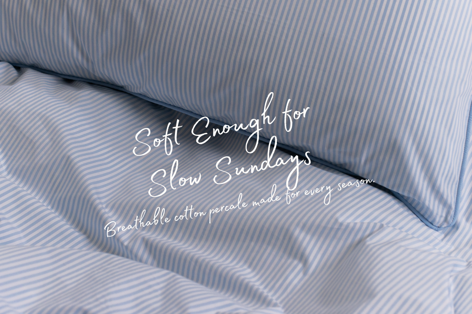 Timeless patterns. Softened palettes. Breathable cotton percale that feels beautiful from the first night and even better over time. No loud prints. No fast trends. No compromise between style and comfort.